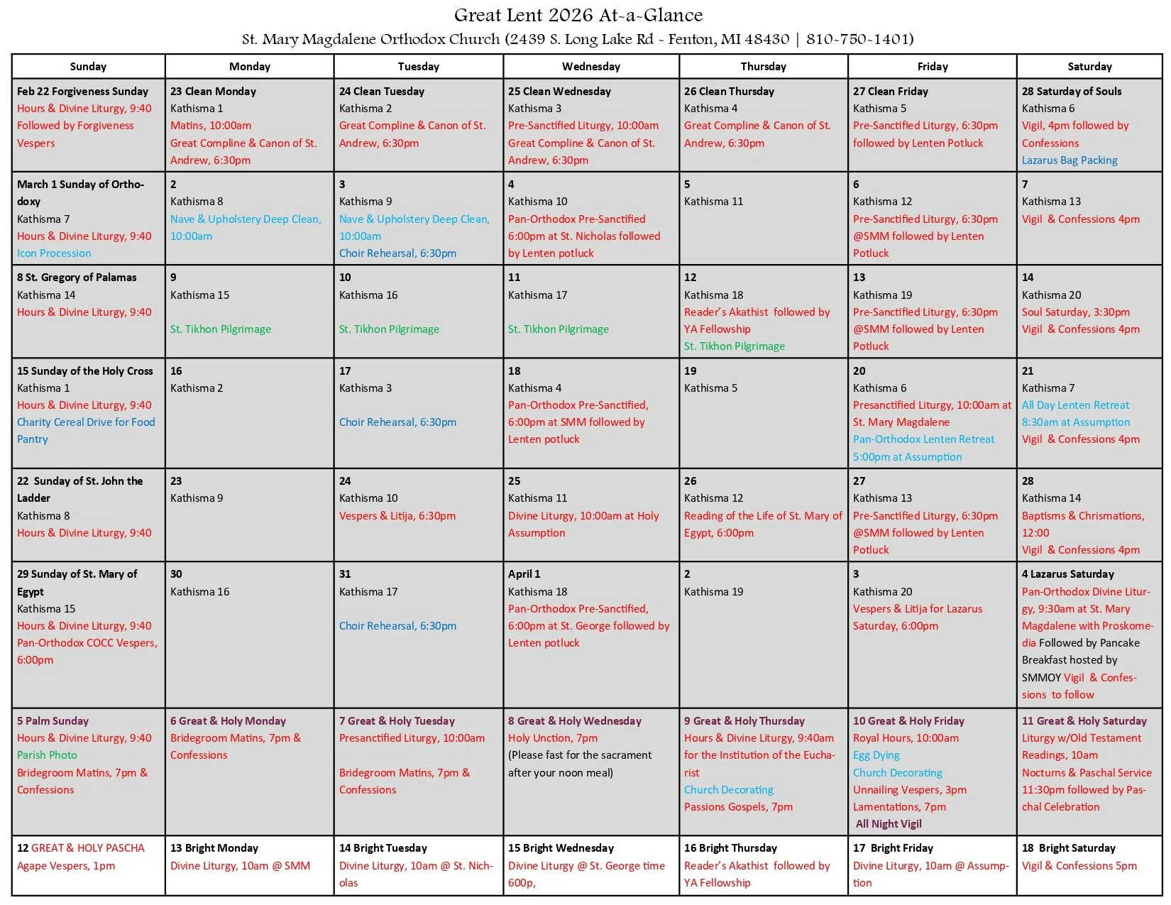 Join us as we journey through Great Lent as a Parish Family! Below is everything you need to know about Great Lent at St. Mary Magdalene Parish!